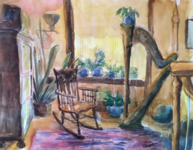 Of course if you were a closer friend or maybe a relative, you got to go upstairs. If you got as far as the landing between the first and second floors, you already were treated to a glorious view. With a sunny window, a rocking chair and a harp, it looked like a place that you could just hang out and absorb the energy coming from the living room or just a scene from a magical children’s book.