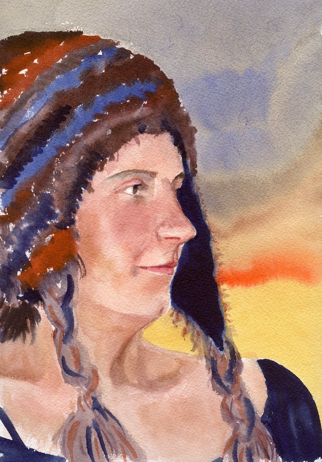 Renin came to our house one dark stormy night here in Seattle wearing this awesome hat. I knew I had to paint her wearing it. Just think, I could have painted your face, it would have been a perfect father’s day present for someone!